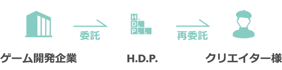 H.D.P.はゲーム企業とクリエイター様との橋渡しをするパートナーとして、多種多様なお仕事をご紹介させていただきます。